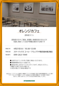 4/21(火) スターバックスコーヒーアミュプラザ鹿児島本館2階店にて認知症カフェが開催されます♪